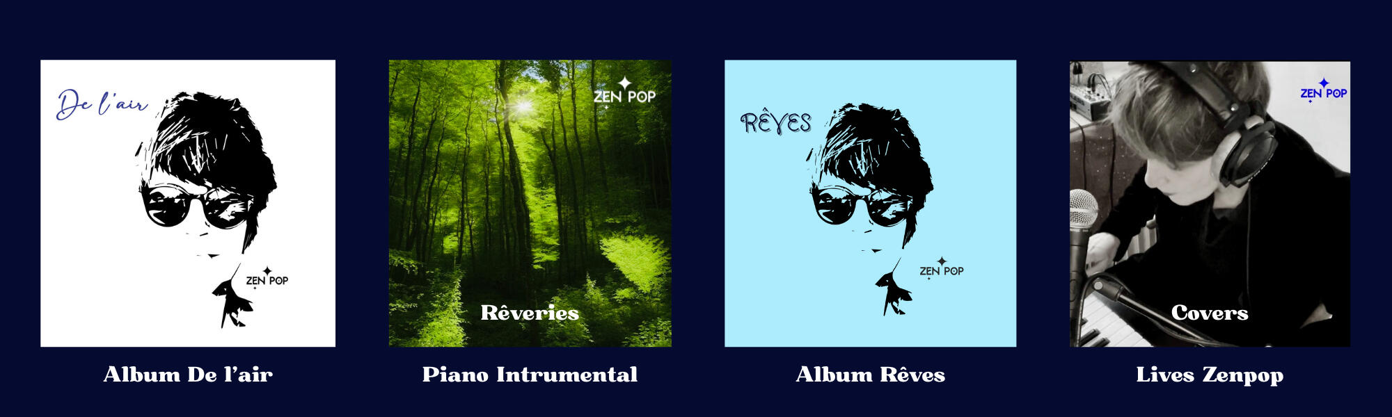 Douée de son hypersensibilité naturelle, elle sait capter la poésie du quotidien, des sons, aux mots, de la beauté à la bonté, des émotions aux gestes. Son esprit éclectique nous transporte dans des contrées nouvelles, dans des paysages panoramiques et poétiques, parfois impressionnistes, parfois envoûtants, parfois disco-dansants et si souvent joyeux. Sa fantaisie et son humour enchantent et chaque titre se veut un laboratoire créatif et bouillonnant.Ce que ZenPop souhaite partager avant tout, c’est cette joie d’être vivants ensemble, ici et maintenant. Sa positive attitude est l’un des piliers de son oeuvre. Ses chansons sont complices et solaires, elles savent enfin nous sortir de cette mélancolie bien connue de la French-Pop ou d’une certaine habitude à la sinistrose…Vérifiez ses LIVES chaque dernier dimanche du mois sur Youtube... .